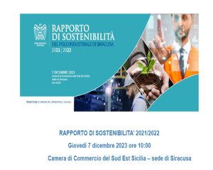 Comunicati Stampa Rapporto di Sostenibilità del Polo Industriale di Siracusa 2021/2022: il 7 dicembre la presentazione a Siracusa alla Camera di Commercio del Sud Est Sicilia. 04/12/2023