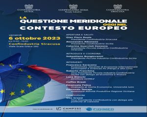 Comunicati Stampa La questione meridionale oggi nel contesto europeo : a Siracusa il 6 Ottobre il convegno della Piccola Industria di Confindustria Sicilia. 29/09/2023