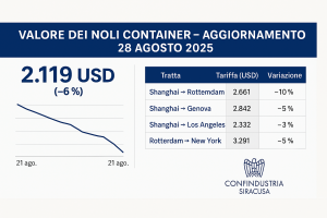 Fisco, credito e finanza agevolata Valore dei noli container – Aggiornamento al 28 agosto 2025 01/09/2025