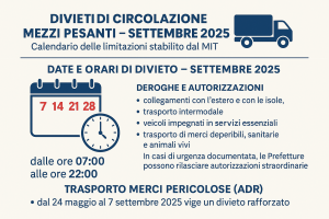 News Divieti di circolazione mezzi pesanti – Settembre 2025 – Calendario delle limitazioni stabilito dal MIT 01/09/2025