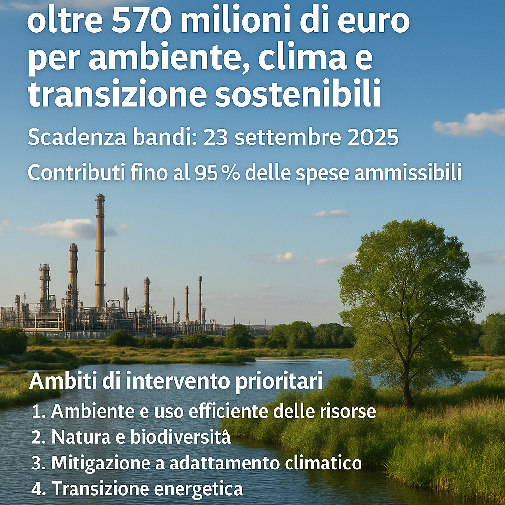 Il Programma LIFE 2025, principale strumento finanziario dell’Unione Europea per sostenere l’ambiente, l’azione per il clima e la transizione energetica, stanzia oltre 570 milioni di euro a fondo perduto per progetti pubblici e privati in linea con il Green Deal europeo.
