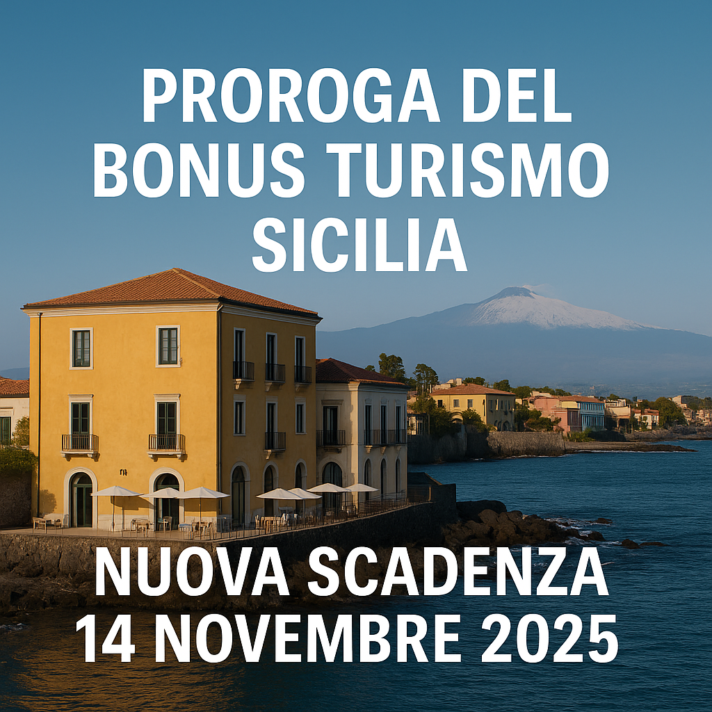 Con il Decreto Dirigenziale n. 3295/S11 del 6 ottobre 2025, il Dipartimento Regionale del Turismo, dello Sport e dello Spettacolo della Regione Siciliana ha disposto la proroga di 30 giorni dei termini per la presentazione delle domande relative all’Avviso “Agevolazioni per le imprese del settore turistico alberghiero ed extra-alberghiero”, a valere sul Fondo per lo Sviluppo e la Coesione (FSC) 2021-2027.