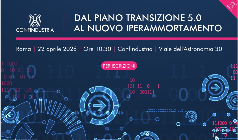 Sia per partecipare in presenza, sia da remoto, occorre registrarsi prima alla piattaforma Eventi di Confindustria (le cui credenziali saranno le stesse per l’accesso a tutti gli eventi futuri organizzati da Confindustria): https://www.confindustria.it/events/dal-piano-transizione-5-0-al-nuovo-iperammortamento/ e procedere poi con l’iscrizione all’evento.