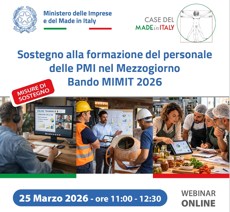 Confindustria informa le imprese associate che il Ministero delle Imprese e del Made in Italy (MIMIT), in collaborazione con Invitalia, organizza un webinar informativo dedicato alla misura “Sviluppo Competenze”, finalizzata al rafforzamento del capitale umano nelle PMI del Mezzogiorno.